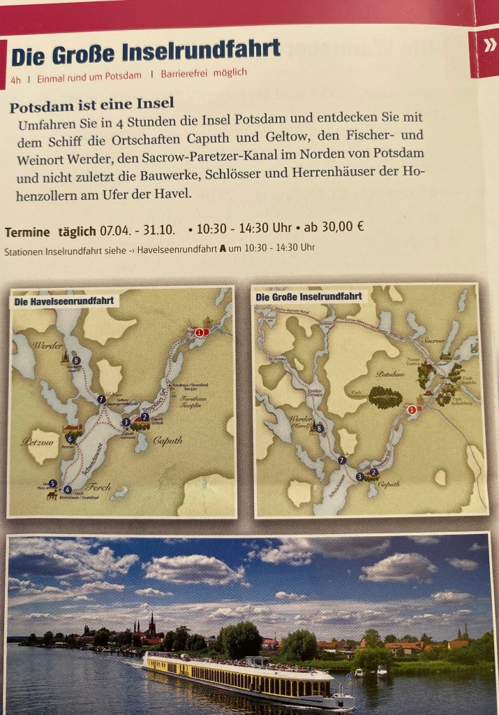 Nach ärä guetä, ruigä und erholsame Nacht hämmer beschlossä, Potsdam go aluegä. Mit äm Zug simmer det anä… isch natürlich für ä Städtereis nöd grad s‘idealä Wätter🤪… gefühlti 45Grad!! Aber was sölls, jetzt simmer da und luegäd euis das alläs mal a. Vieeeel schööni Hüser häts da, Chilä, Schlösser und Dänkmöler!! So ä schöni Altstadt mit chlinä herzige und coolä Lädä häts jetzt nöd grad, oder mir händ halt eifach nöd gfundä!! Potsdam isch äs bizzeli grösser als Winti, aber mir gfallt Winti also besser. Öppis go ässä simmer imä ganz coolä Resti gsie. Extrablatt häts gheissä und so händs au ihri Spiischartä gmacht. sÄssä isch sehr guet gsie und s‘chüelä Getränk bitter nötig!! Dä retour Wäg hämmer nid welä mit äm Zug machä… mir sind uf Schiff!! Mega läss gsie. Dä Fahrtwind……. herrlich!!! Usssicht……. fantastisch!!! Än schönä, heissä Tag gat langsam zEnd…… mir höckläd uf euisnä Campingstüel, luegäd in See usä und lönd euis vo dä Muggä stächä🙈